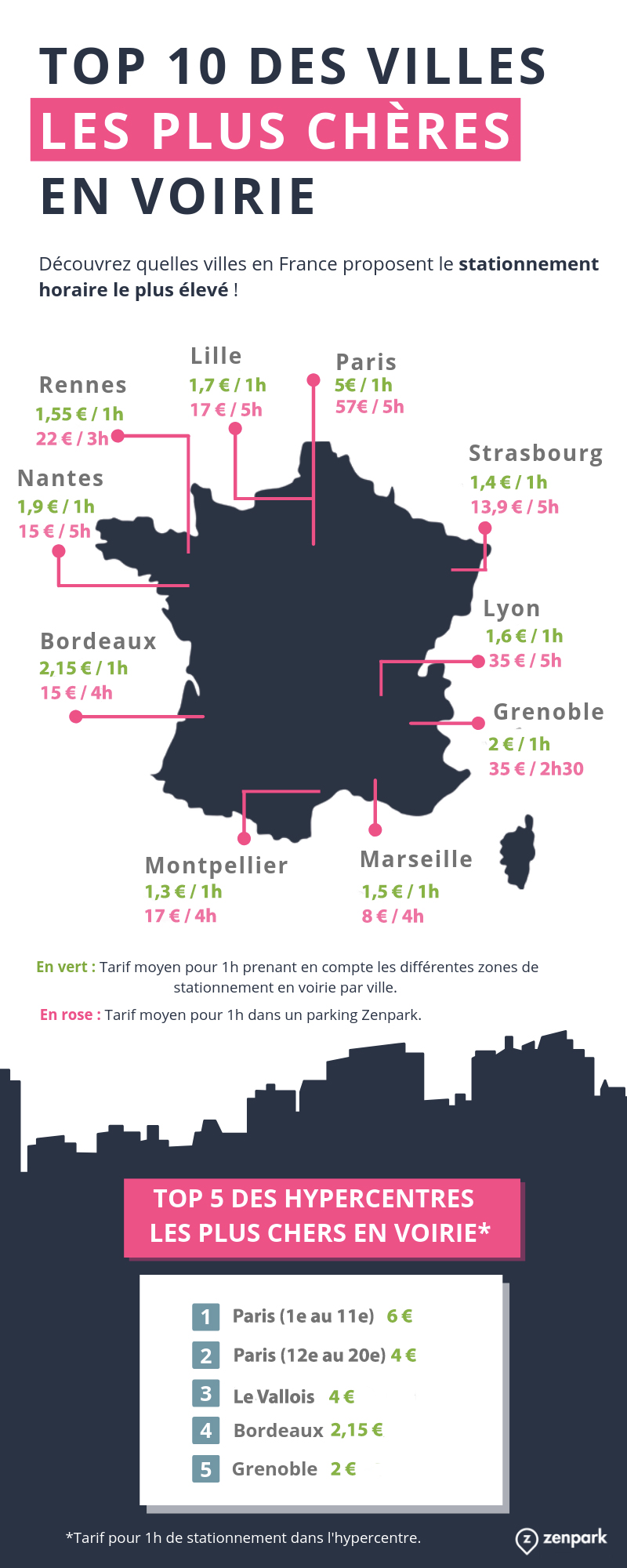 On estime qu’un automobiliste sur 4 en circulation est à la recherche d’une place pour se garer. Particulièrement touchées par l’encombrement des places en voirie, les grandes villes ont adopté de nouvelles mesures afin de dissuader les véhicules-ventouses de stationner sur de très longues durées sans aucune rotation. Cela est évidemment passé par une augmentation du stationnement horaire et du FPS (Forfait Post Stationnement) et une réduction du temps de stationnement. Aujourd’hui, la Zenteam vous dévoile tout ce qu’il y a à savoir sur le stationnement en voirie... À commencer par un top 10 des villes les plus chères !