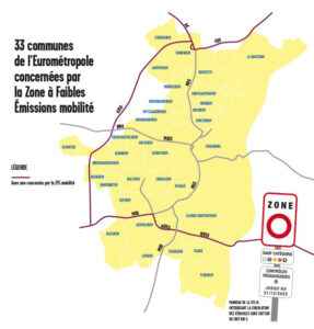 Dans l'Eurométropole de Strasbourg, la ZFE est mise en œuvre depuis le 1er janvier 2023 et s'applique 7j/7, 24h/24. Elle s’applique dans les 33 communes et sur l'ensemble des axes de l'Eurométropole. La M35 et la M351 sur leur partie urbaine sont aussi concernées.