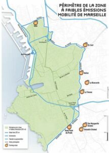 Depuis septembre 2022, une zone à faible émission (ZFE) est mise en place dans le centre de Marseille. Elle concerne tous les véhicules (véhicules particuliers, deux roues motorisés, véhicules utilitaires légers, poids lourds, autobus et autocars) et s’applique de façon permanente 7 jours sur 7 et 24h sur 24. La ZFE de Marseille s'étend sur l'intérieur des boulevards : avenue du Cap Pinède, boulevards Capitaine Gèze et de Plombières, avenue Alexandre Fleming, boulevards Françoise Duparc, Sakakini, Jean Moulin et Rabatau, avenue du Prado 2. La passerelle de l’A55 et les tunnels restent accessibles à tous les véhicules.