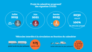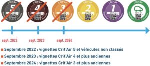 - Janvier 2025 : Crit'Air 3 (période de pédagogie pour les Crit'Air 2, pas de sanctions)