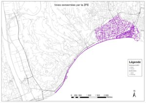 La ZFE de Nice s'étend sur la Promenade des Anglais, le Quai des Etats Unis, le Quai Rauba Capeu, mais également dans l’hypercentre de la ville de Nice dans un périmètre constitué des voies suivantes : au sud, la Promenade des Anglais incluse, au nord, la voie Mathis non incluse, à l’est, le Boulevard Carabacel non inclus et l’Avenue Désambrois non incluse, et à l’ouest, le Boulevard Grosso non inclus.