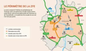 À Toulouse, la ZFE est en place depuis le 1ᵉʳ mars 2022, mais concerne les particuliers depuis le 1ᵉʳ janvier 2023. Les restrictions s'appliquent 24h/24 et 7j/7. La ZFE englobe Toulouse à l’intérieur de la rocade et une petite partie de Colomiers et Tournefeuille.