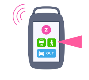 Appuyez sur l'icône IN de votre Zenpass pour démarrer votre session de stationnement. La facturation commence. L'affichage lumineux du parking clignote en vert et la porte s'ouvre. Le signal lumineux clignote en rouge lorsque le parking est complet.![]() |