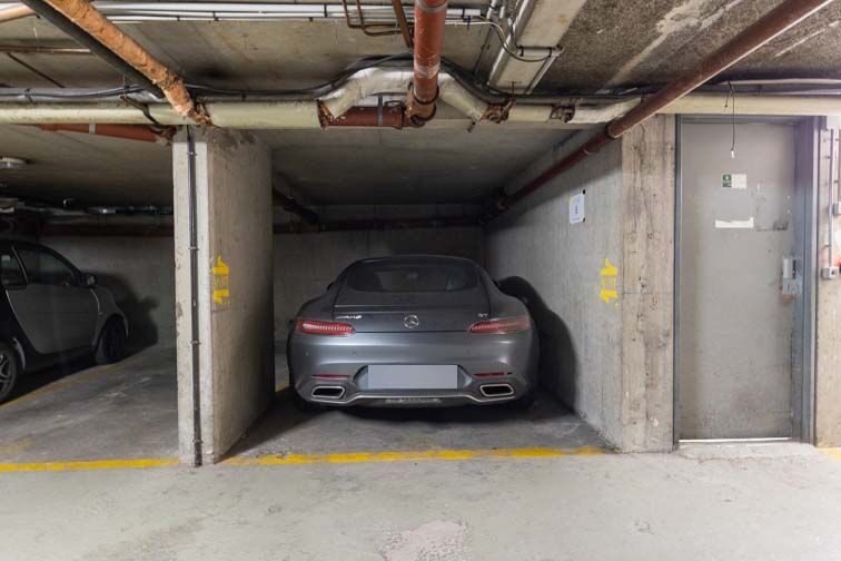 Le parking est situé au niveau -3, il est propre et bien entretenu. En revanche, les places sont assez étroites pour la taille de ma voiture. Il m’est souvent difficile de sortir du véhicule, ou bien je suis contrainte de me garer très près de la voiture voisine, ce qui n’est pas idéal.