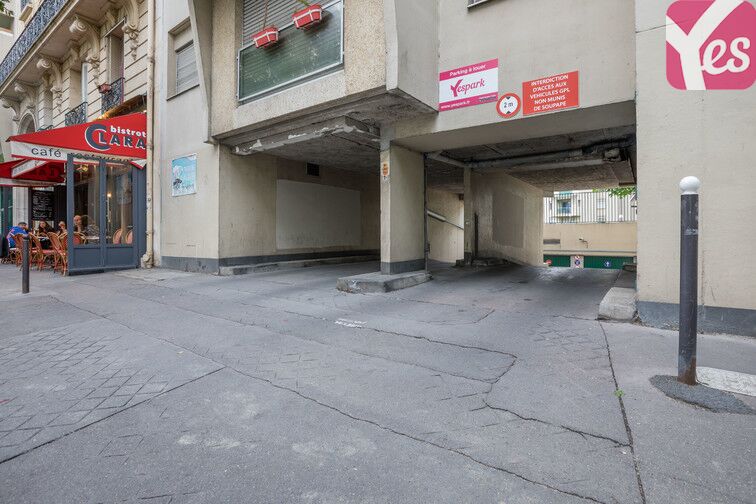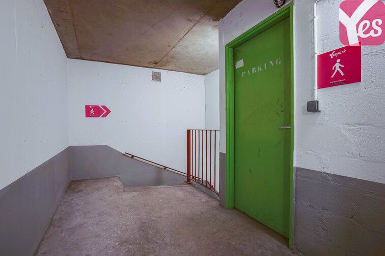 L'accès est identifiable grâce aux panneaux roses extérieurs Zenpark situés en haut de rampe.