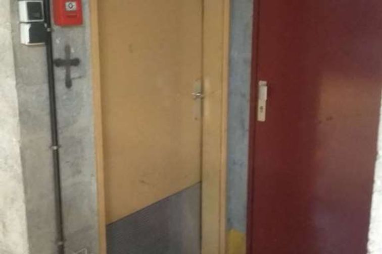 L'accès au parking est un portail basculant blanc situé juste à côté de l'arrêt de bus "Président Robert Schuman".