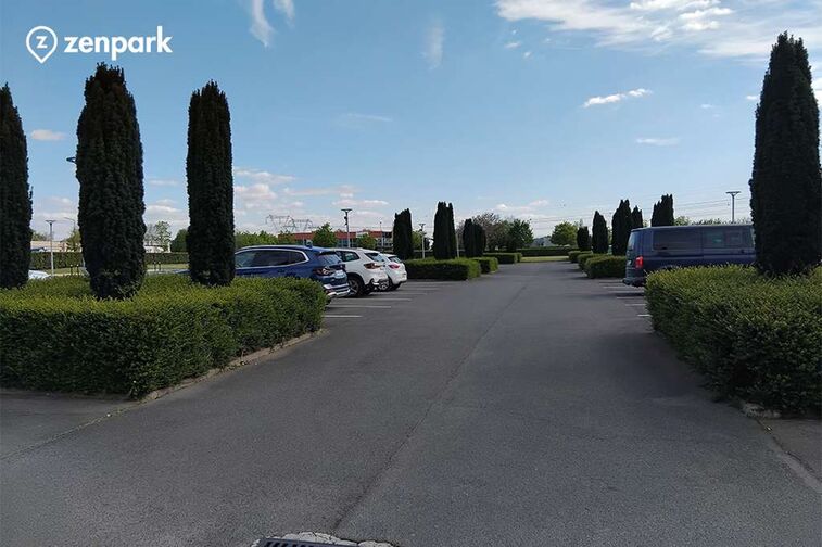 Le parking est celui de Van der Valk Hotel, l'entrée se fait par la double barrière, visible depuis le rond-point.